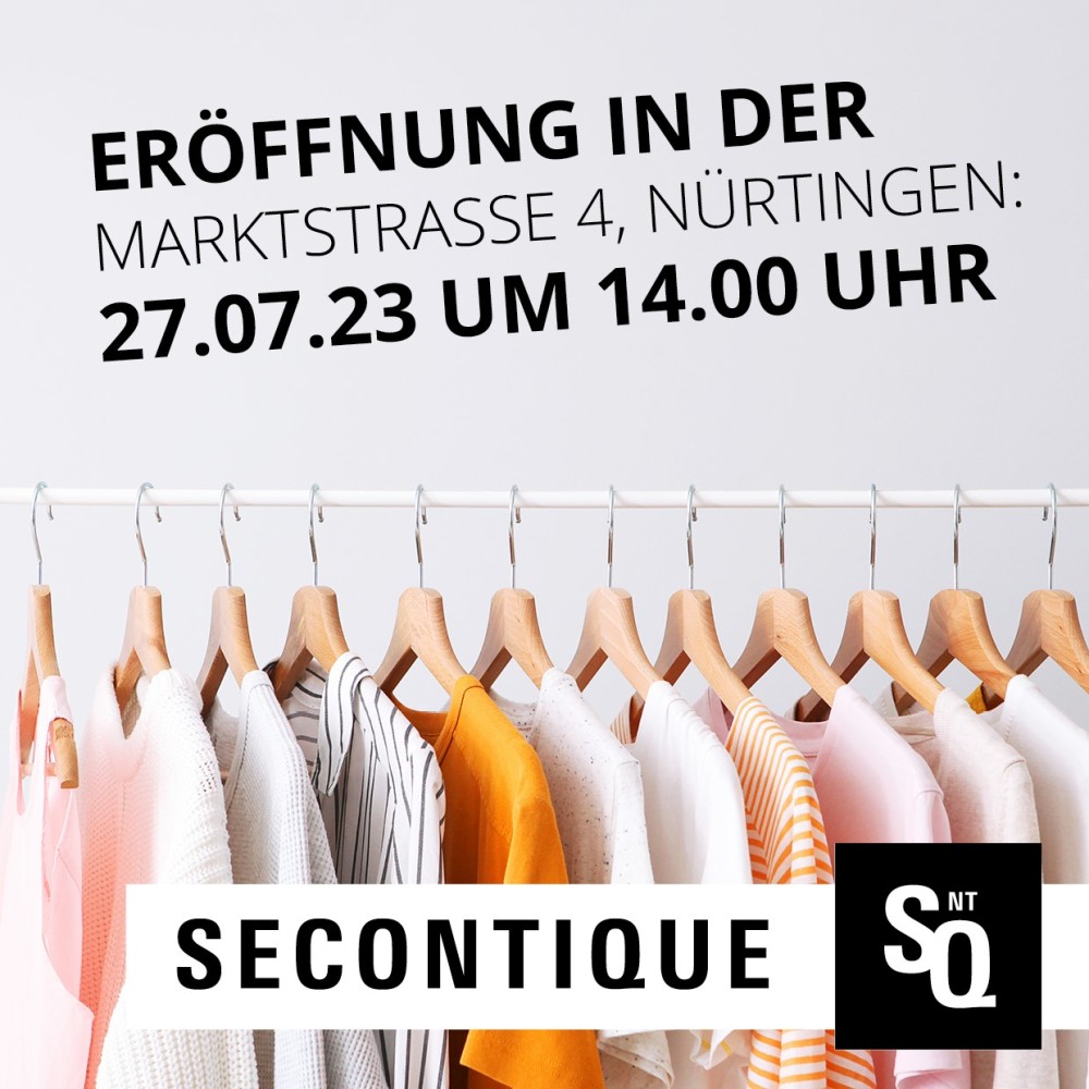 Die Vorbereitungen für die neue SECONTIQUE in der Marktstraße 4 in Nürtingen kommen gut voran. Die Eröffnung wird am 27.07. um 14.00 Uhr stattfinden. Ab dann werden Damen- und Herrenmode sowie Haushaltstextilien und Schuhe auf über 240 m² zu den regulären Öffnungszeiten angeboten.